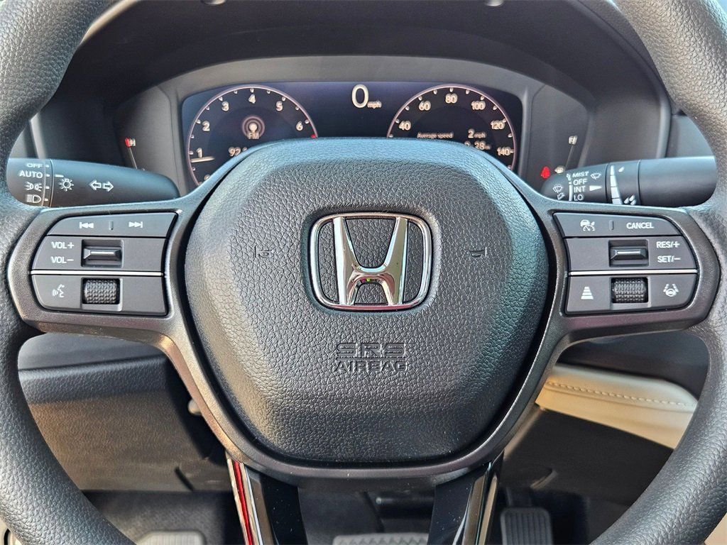 This vehicle comes well equipped with Gray Cloth Gray Cloth, 4 Speakers, 4-Wheel Disc Brakes, ABS brakes, Adaptive Cruise Control: Adaptive Cruise Control (ACC) with Low-Speed Follow, Air Conditioning, Alloy wheels, AM/FM radio, Apple CarPlay/Android Auto, Auto High-beam Headlights, Automatic temperature control, Brake assist, Bumpers: body-color, Compass, Delay-off headlights, Driver door bin, Driver vanity mirror, Dual front impact airbags, Dual front side impact airbags, Electronic Stability Control, Emergency communication system: HondaLink Assist, Exterior Parking Camera Rear, Fabric Seat Trim, Four wheel independent suspension, Front anti-roll bar, Front Bucket Seats, Front Center Armrest, Front reading lights, Fully automatic headlights, Illuminated entry, Knee airbag, Lane departure: Lane Keeping Assist System (LKAS) active, Low tire pressure warning, Occupant sensing airbag, Outside temperature display, Overhead airbag, Overhead console, Panic alarm, Passenger door bin, Passenger vanity mirror, Power door mirrors, Power steering, Power windows, Radio data system, Radio: 160-Watt Audio System, Rear anti-roll bar, Rear reading lights, Rear seat center armrest, Rear side impact airbag, Rear window defroster, Remote keyless entry, Security system, Speed control, Speed-sensing steering, Speed-Sensitive Wipers, Steering wheel mounted audio controls, Tachometer, Telescoping steering wheel, Tilt steering wheel, Traction control, Trip computer, Variably intermittent wipers, and Wheels: 17" x 7.5J Blade Silver.