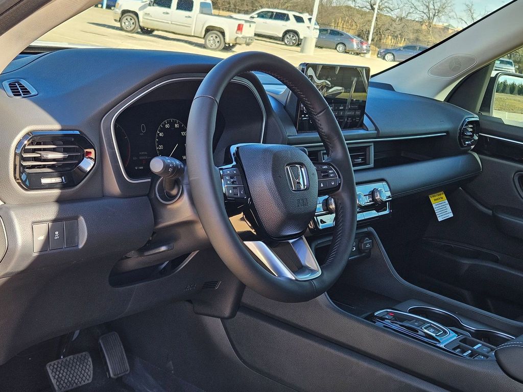This vehicle comes well equipped with AWD AWD, 3rd row seats: split-bench, 4-Wheel Disc Brakes, 4.167 Axle Ratio, 9 Speakers, ABS brakes, Adaptive Cruise Control: Adaptive Cruise Control (ACC) with Low-Speed Follow, Air Conditioning, Alloy wheels, AM/FM radio: SiriusXM, Apple CarPlay/Android Auto, Auto High-beam Headlights, Auto-dimming Rear-View mirror, Automatic temperature control, Blind Spot Information (BSI) System warning, Brake assist, Bumpers: body-color, Delay-off headlights, Driver door bin, Driver vanity mirror, Dual front impact airbags, Dual front side impact airbags, Electronic Stability Control, Emergency communication system: HondaLink Assist, Exterior Parking Camera Rear, Four wheel independent suspension, Front anti-roll bar, Front Bucket Seats, Front Center Armrest, Front dual zone A/C, Front fog lights, Front reading lights, Fully automatic headlights, Garage door transmitter: HomeLink, Heated door mirrors, Heated Front Bucket Seats, Heated front seats, Illuminated entry, Knee airbag, Lane departure: Lane Keeping Assist System (LKAS) active, Leather Seat Trim, Low tire pressure warning, Memory seat, Occupant sensing airbag, Outside temperature display, Overhead airbag, Overhead console, Panic alarm, Passenger door bin, Passenger vanity mirror, Power door mirrors, Power driver seat, Power Liftgate, Power passenger seat, Power steering, Power windows, Radio data system, Radio: 245-Watt Audio System, Rear air conditioning, Rear anti-roll bar, Rear reading lights, Rear seat center armrest, Rear window defroster, Rear window wiper, Reclining 3rd row seat, Remote keyless entry, Security system, SiriusXM, Speed control, Speed-sensing steering, Speed-Sensitive Wipers, Split folding rear seat, Spoiler, Steering wheel mounted audio controls, Tachometer, Telescoping steering wheel, Tilt steering wheel, Traction control, Trip computer, Turn signal indicator mirrors, Variably intermittent wipers, and Wheels: 18" Pewter Gray Machined Face.