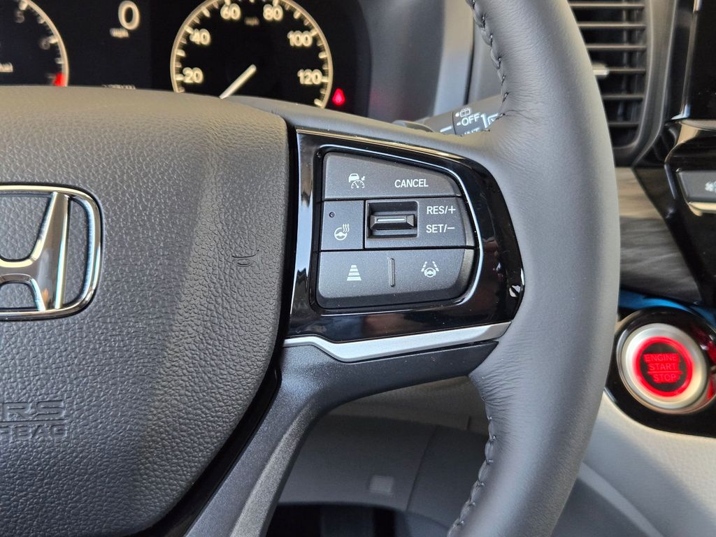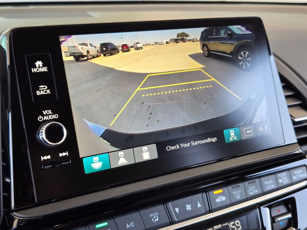 This vehicle comes well equipped with 11 Speakers, 3rd row seats: split-bench, 4-Wheel Disc Brakes, ABS brakes, Adaptive Cruise Control: Adaptive Cruise Control (ACC) with Low-Speed Follow, Air Conditioning, Alloy wheels, AM/FM radio: SiriusXM, Anti-whiplash front head restraints, Apple CarPlay/Android Auto, Auto High-beam Headlights, Auto-dimming door mirrors, Auto-dimming Rear-View mirror, Automatic temperature control, Blind Spot Information (BSI) System warning, Brake assist, Bumpers: body-color, Compass, Delay-off headlights, Driver door bin, Driver vanity mirror, Driver's Seat Mounted Armrest, Dual front impact airbags, Dual front side impact airbags, Electronic Stability Control, Emergency communication system: HondaLink, Exterior Parking Camera Rear, Four wheel independent suspension, Front anti-roll bar, Front Bucket Seats, Front dual zone A/C, Front fog lights, Front reading lights, Fully automatic headlights, Garage door transmitter: HomeLink, Heated & Ventilated Front Bucket Seats, Heated door mirrors, Heated front seats, Heated steering wheel, Illuminated entry, Knee airbag, Lane departure: Lane Keeping Assist System (LKAS) active, Leather steering wheel, Low tire pressure warning, Memory seat, Navigation system: Honda Satellite-Linked Navigation System, Occupant sensing airbag, Outside temperature display, Overhead airbag, Overhead console, Panic alarm, Passenger door bin, Passenger seat mounted armrest, Passenger vanity mirror, Perforated Leather-Trimmed Seats w/Piping, Power door mirrors, Power driver seat, Power Liftgate, Power moonroof, Power passenger seat, Power steering, Power windows, Radio data system, Radio: 500-Watt AM/FM/HD Premium Audio System, Rain sensing wipers, Rear air conditioning, Rear anti-roll bar, Rear audio controls, Rear reading lights, Rear seat center armrest, Rear window defroster, Rear window wiper, Reclining 3rd row seat, Remote keyless entry, Security system, Speed control, Speed-sensing steering, Speed-Sensitive Wipers, Split folding rear seat, Spoiler, Steering wheel mounted audio controls, Tachometer, Telescoping steering wheel, Tilt steering wheel, Traction control, Trip computer, Turn signal indicator mirrors, Variably intermittent wipers, Ventilated front seats, and Wheels: 19" Machine-Finished Alloy.