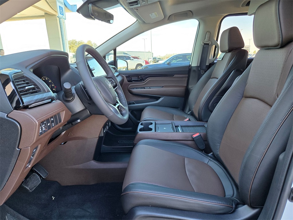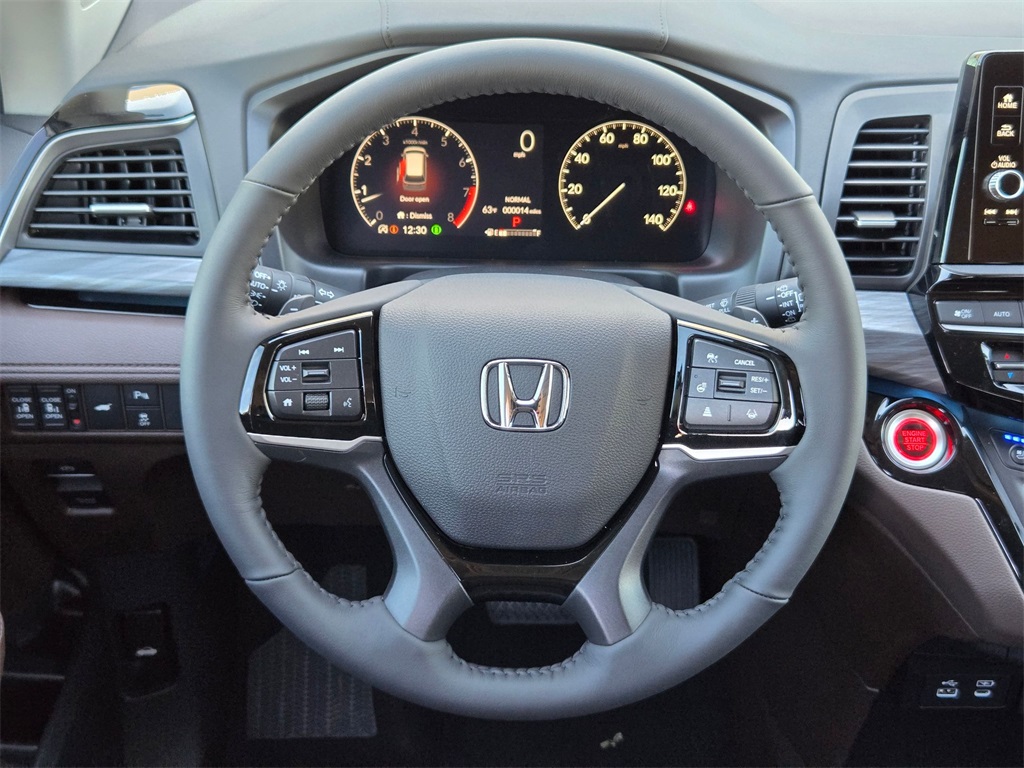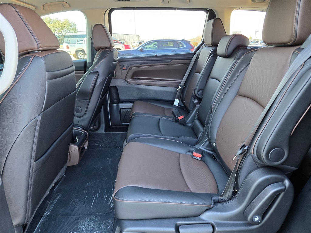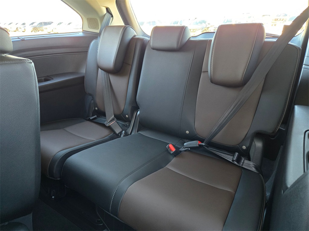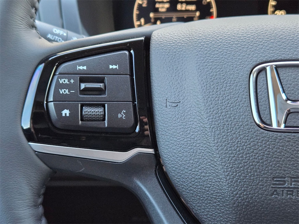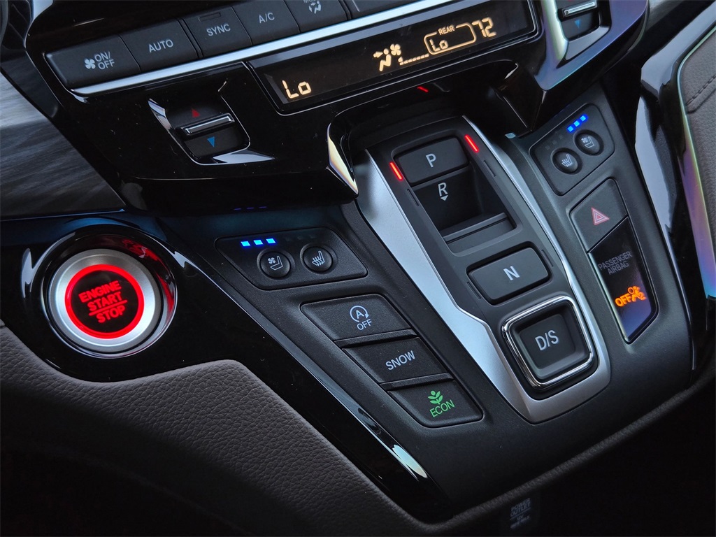This vehicle comes well equipped with 11 Speakers, 3rd row seats: split-bench, 4-Wheel Disc Brakes, ABS brakes, Adaptive Cruise Control: Adaptive Cruise Control (ACC) with Low-Speed Follow, Air Conditioning, Alloy wheels, AM/FM radio: SiriusXM, Anti-whiplash front head restraints, Apple CarPlay/Android Auto, Auto High-beam Headlights, Auto-dimming door mirrors, Auto-dimming Rear-View mirror, Automatic temperature control, Blind Spot Information (BSI) System warning, Brake assist, Bumpers: body-color, Compass, Delay-off headlights, Driver door bin, Driver vanity mirror, Driver's Seat Mounted Armrest, Dual front impact airbags, Dual front side impact airbags, Electronic Stability Control, Emergency communication system: HondaLink, Exterior Parking Camera Rear, Four wheel independent suspension, Front anti-roll bar, Front Bucket Seats, Front dual zone A/C, Front fog lights, Front reading lights, Fully automatic headlights, Garage door transmitter: HomeLink, Heated & Ventilated Front Bucket Seats, Heated door mirrors, Heated front seats, Heated steering wheel, Illuminated entry, Knee airbag, Lane departure: Lane Keeping Assist System (LKAS) active, Leather steering wheel, Low tire pressure warning, Memory seat, Navigation system: Honda Satellite-Linked Navigation System, Occupant sensing airbag, Outside temperature display, Overhead airbag, Overhead console, Panic alarm, Passenger door bin, Passenger seat mounted armrest, Passenger vanity mirror, Perforated Leather-Trimmed Seats w/Piping, Power door mirrors, Power driver seat, Power Liftgate, Power moonroof, Power passenger seat, Power steering, Power windows, Radio data system, Radio: 500-Watt AM/FM/HD Premium Audio System, Rain sensing wipers, Rear air conditioning, Rear anti-roll bar, Rear audio controls, Rear reading lights, Rear seat center armrest, Rear window defroster, Rear window wiper, Reclining 3rd row seat, Remote keyless entry, Security system, Speed control, Speed-sensing steering, Speed-Sensitive Wipers, Split folding rear seat, Spoiler, Steering wheel mounted audio controls, Tachometer, Telescoping steering wheel, Tilt steering wheel, Traction control, Trip computer, Turn signal indicator mirrors, Variably intermittent wipers, Ventilated front seats, and Wheels: 19" Machine-Finished Alloy.