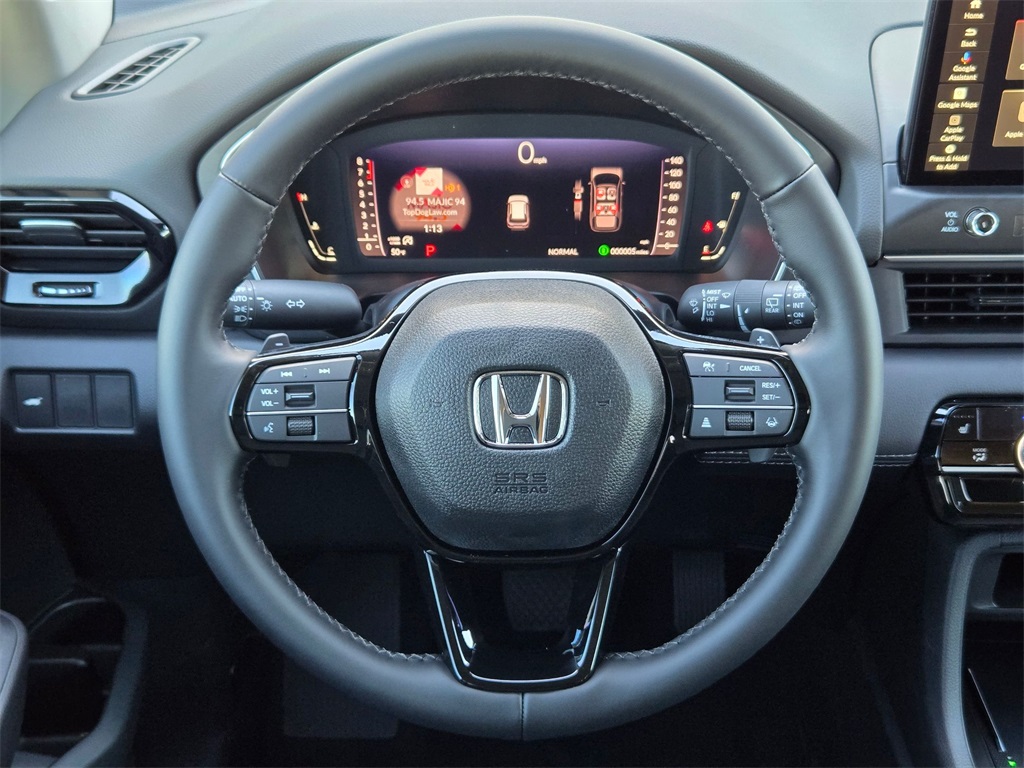 This vehicle comes well equipped with 4-Wheel Disc Brakes, 9 Speakers, ABS brakes, Adaptive Cruise Control: Adaptive Cruise Control (ACC) with Low-Speed Follow, Air Conditioning, Alloy wheels, Apple CarPlay/Android Auto, Auto High-beam Headlights, Auto-dimming Rear-View mirror, Automatic temperature control, Blind Spot Information (BSI) System warning, Brake assist, Compass, Delay-off headlights, Driver door bin, Driver vanity mirror, Driver's Seat Mounted Armrest, Dual front impact airbags, Dual front side impact airbags, Electronic Stability Control, Emergency communication system: HondaLink, Exterior Parking Camera Rear, Four wheel independent suspension, Front anti-roll bar, Front Bucket Seats, Front Center Armrest, Front dual zone A/C, Front reading lights, Fully automatic headlights, Heated door mirrors, Heated Front Bucket Seats, Heated front seats, HVAC memory, Illuminated entry, Knee airbag, Lane departure: Lane Keeping Assist System (LKAS) active, Leather & Cloth Seat Trim, Leather steering wheel, Low tire pressure warning, Memory seat, Navigation system: Google Maps, Occupant sensing airbag, Outside temperature display, Overhead airbag, Overhead console, Panic alarm, Passenger door bin, Passenger seat mounted armrest, Passenger vanity mirror, Power door mirrors, Power driver seat, Power Liftgate, Power passenger seat, Power steering, Power windows, Radio data system, Radio: Audio System w/9 Speakers, Rear air conditioning, Rear anti-roll bar, Rear reading lights, Rear seat center armrest, Rear window defroster, Rear window wiper, Remote keyless entry, Security system, Speed control, Speed-sensing steering, Split folding rear seat, Spoiler, Steering wheel mounted audio controls, Tachometer, Telescoping steering wheel, Tilt steering wheel, Traction control, Trip computer, Variably intermittent wipers, and Wheels: 18" Shark Gray Alloy.