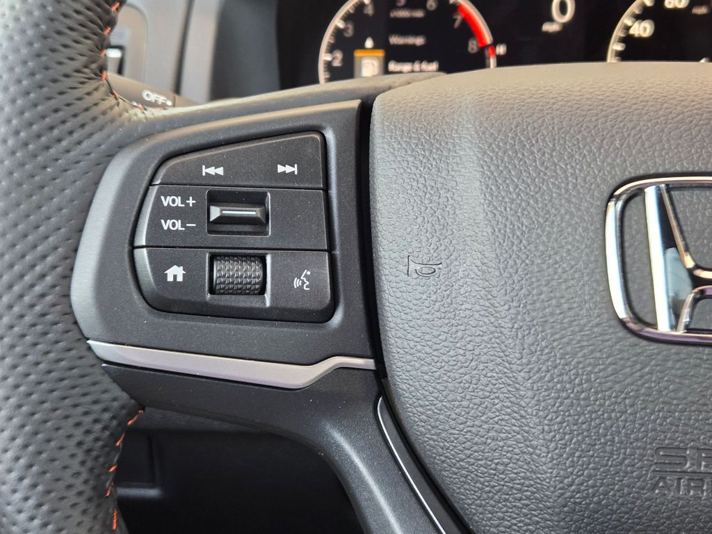 This vehicle comes well equipped with Nh-877p/Black Leather Nh-877p/Black Leather, 4-Wheel Disc Brakes, 4.33 Axle Ratio, 7 Speakers, ABS brakes, Air Conditioning, Alloy wheels, AM/FM radio: SiriusXM, Auto-dimming Rear-View mirror, Automatic temperature control, Blind Spot Information (BSI) System warning, Bluetooth® Hands-Free Link, Brake assist, Bumpers: body-color, Compass, Delay-off headlights, Driver door bin, Driver vanity mirror, Driver's Seat Mounted Armrest, Dual front impact airbags, Dual front side impact airbags, Electronic Stability Control, Emergency communication system: HondaLink Assist, Exterior Parking Camera Rear, Four wheel independent suspension, Front anti-roll bar, Front Bucket Seats, Front dual zone A/C, Front fog lights, Front reading lights, Fully automatic headlights, Garage door transmitter: HomeLink, Heated door mirrors, Heated Front Bucket Seats, Heated front seats, Heated steering wheel, Honda Satellite-Linked Navigation System, Illuminated entry, Leather Seat Trim, Leather steering wheel, Low tire pressure warning, Memory seat, Navigation system: Honda Satellite-Linked Navigation System, Occupant sensing airbag, Outside temperature display, Overhead airbag, Overhead console, Panic alarm, Passenger door bin, Passenger seat mounted armrest, Passenger vanity mirror, Power door mirrors, Power driver seat, Power moonroof, Power passenger seat, Power steering, Power windows, Radio data system, Radio: 215-Watt Audio System with 7 Speakers, Rear air conditioning, Rear anti-roll bar, Rear reading lights, Rear seat center armrest, Rear step bumper, Rear window defroster, Remote keyless entry, Security system, SiriusXM, Speed control, Speed-sensing steering, Split folding rear seat, Steering wheel mounted audio controls, Tachometer, Telescoping steering wheel, Tilt steering wheel, Traction control, Trip computer, Turn signal indicator mirrors, Variably intermittent wipers, and Wheels: 18" Trailsport Shark Gray Alloy.